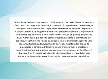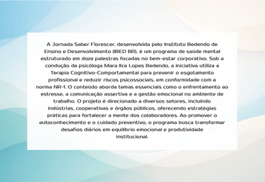 Uma série de palestras voltadas a homens e mulheres, com foco na saúde mental dos colaboradores.